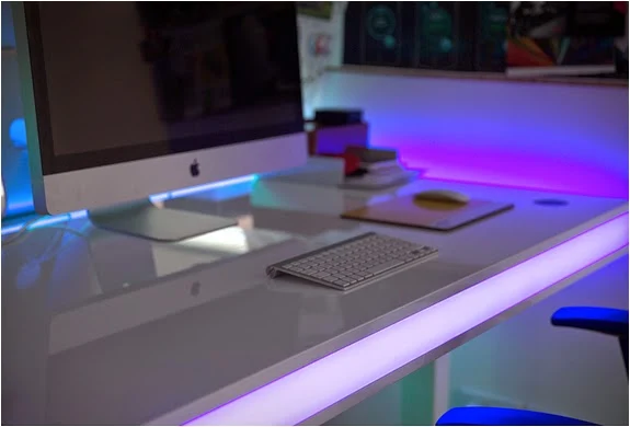 Bu ilgi çekici çalışma masası Tableair, adından da anlaşılacağı gibi yukarı ve aşağı hareket ederek ihtiyacınız olan yüksekliğe sahip olabiliyor. Elinizi sensörün üzerine getirin ve istediğiniz yükseklikte tutun,aynı zamanda kaldıraç görevi gören masa bacakları gerisini sizin için halletsin; 64 ila 130 cm arasında yükselsin. Masanın yan tarafında 8 ayrı renge ayarlanabilen yanarlı dönerli led aydınlatma sistemi ruh halinizi masanıza yansıtıyor. Ayrıca masanızın üstü 4, masa bacakları 3, elektrik kablosu ise 2 ayrı renk seçeneğiyle sunularak odanıza uygun bir lego parçası haline gelebiliyor. İki adet USB ve iki adet AC girişiyle de elektronik cihazlarınızın şarj ihtiyaçlarına yanıt verebiliyor. Dahası tablet veya akıllı telefonlarınızdan masanızın yükseklik ve renk değişimlerini kontrol edebileceğiniz bir uygulama bile düşünülmüş. Daha ne olsun?